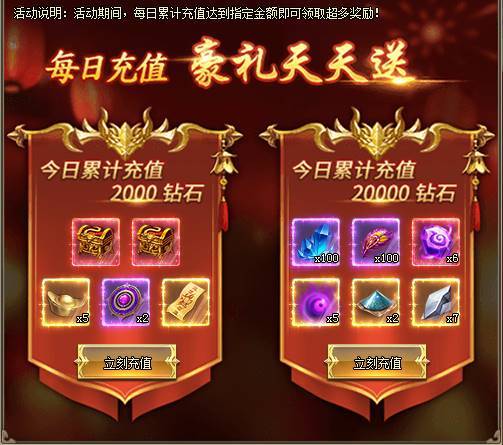 1、活动期间,每日累计充值达到指定金额即可领取超多奖励。[游戏内显示为准]