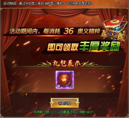 1、活动期间,通过升级奥义等级消耗奥义精粹,可领取丰厚返利![游戏内显示为准]